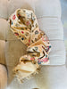 Écharpe écru toute douce parée de jolies fleurs.