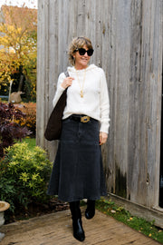 Jupe en denim gris, pièce incontournable de la garde-robe pour un style décontracté et intemporel.