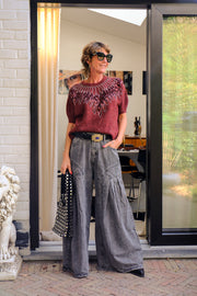 Jeans large avec pinces aux niveau des cuisses. ATTENTION IL TAILLE GRAND! Prendre une taille en dessous de la vôtre)