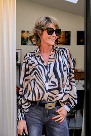 Chemisier en voile doublé motifs zébré et manches bouffantes