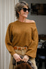 Pull moutarde avec avec boutons dans le dos avec liseré en bronze pailleté