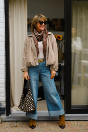 Jeans bleu vintage large bien extensible avec rebords. coupe 8/10 ème