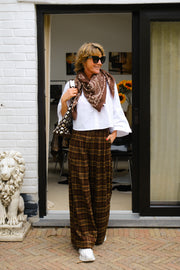 Pantalon matière ultra douce à carreaux taille élastique au dos