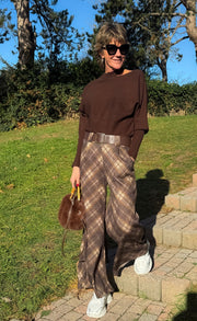 Pantalon en matière ultra douce à carreaux et taille élastique