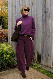 Pantalon en velours côtelé et poches plaquées. Coupe ballon