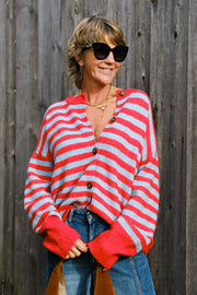 Gilet de couleur rouge à rayures bleues bien oversize