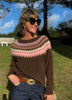 Pull en mailles duveteuse motifs jacquard nordique style vintage