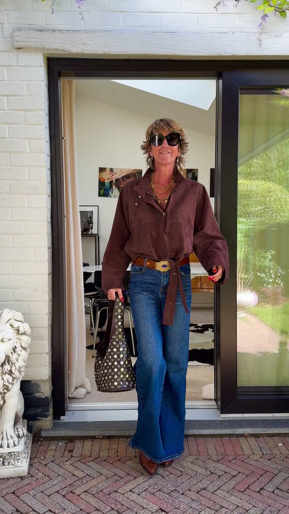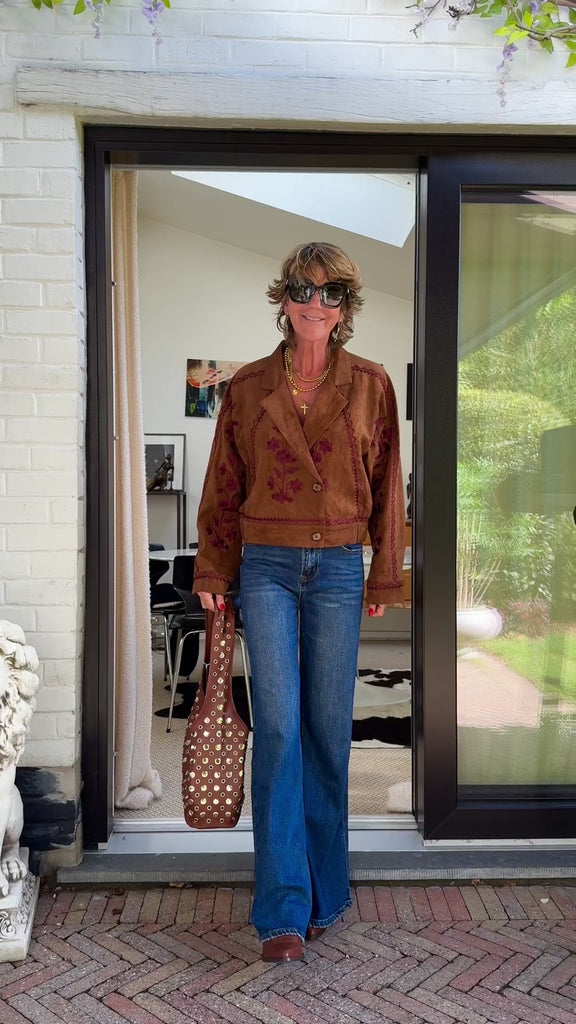 Veste en matière suédine doublée et broderies bordeaux. Superbe qualité