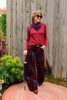 Pantalon coupe ballon en jeans et velours bordeaux (cela donne un effet marbré)
