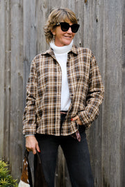 Chemisier en matière chaude et douce à carreaux marron