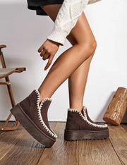 Bottines fourrées bords brodés façon grande marque en simili daim