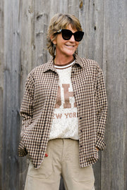Chemise en matière douce et chaude à petits carreaux marron