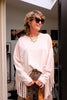 Ce sweat en tissu jogging arbore des franges au dos et sur les manches.