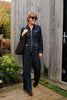 Combinaison jeans dotée d'une fermeture éclair et de quatre poches avant agrémentées de boutons dorés.