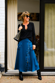 Jupe en matière satin fermeture tirette dorée et petites poches