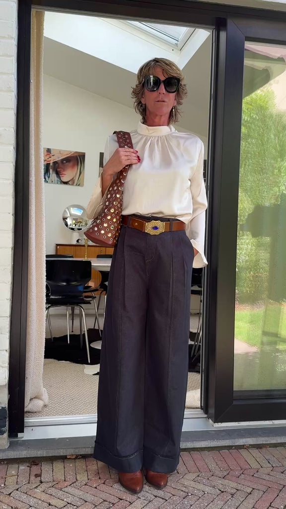 Babeth mesure 1m72 et fait un 36 de taille. Elle porte un S