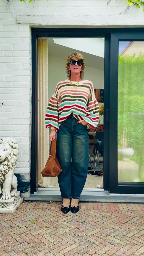 Jean bleu vintage, doté d’une coupe ballon super tendance. Babeth mesure 1m72 et fait un 36 de taille. Elle porte un 36.  Composition : 66% Cotton, 33% Polyester & 1%...