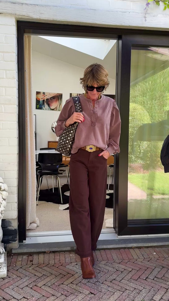 Sweat couleur délavée avec petits clous décoratifs fermeture tirette