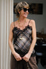 Débardeur en matière satin à carreaux kaki, noir et choco et dentelles