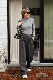 Pantalon large à fines rayures en matière feutrine super doux et stretch