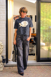 Jeans doublé ceinture noir bien ample . Se porte taille basse. IL TAILLE GRAND!!