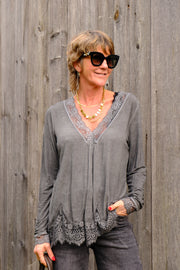Top longues manches ample en viscose avec de des détails en dentelles