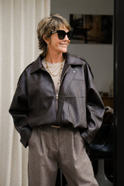 Veste oversize superbe qualité en simili cuir et intérieur matière douce et chaude. Tissu très souple