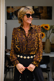 Chemisier fluide léopard épaules froncées . Doublé à l'avant