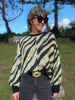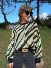 Pull à motifs zébré tons camel, noir et kaki avec sequins