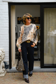 Babeth mesure 1m72 et fait un 36 de taille. Elle porte un 36