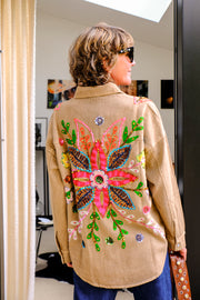 Chemise ou sur chemise en gros coton délavé et dessins en sequins brodés au dos