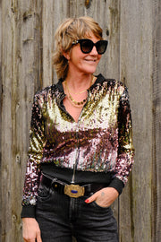 Veste courte en sequins colorée, doublée et fermeture zippée